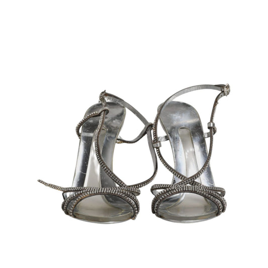 Dolce & Gabbana Silver Crystal Ankle Strap Sandals Shoes