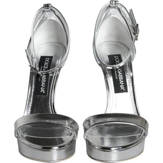 Dolce & Gabbana Silver KEIRA Heels Ankle Strap Sandals Shoes