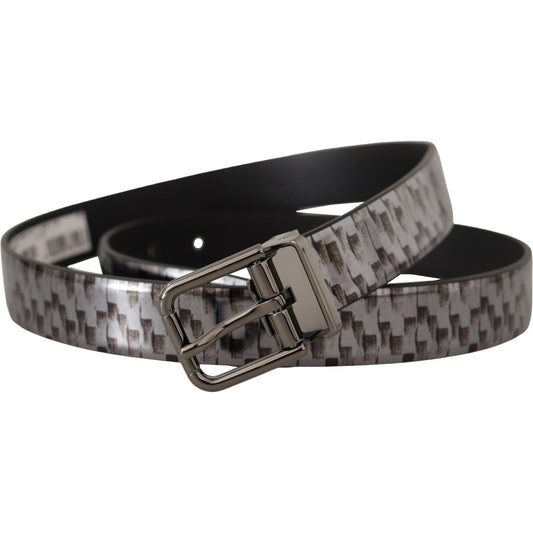 Dolce & Gabbana Gray Leather Silver Tone Metal Buckle Belt