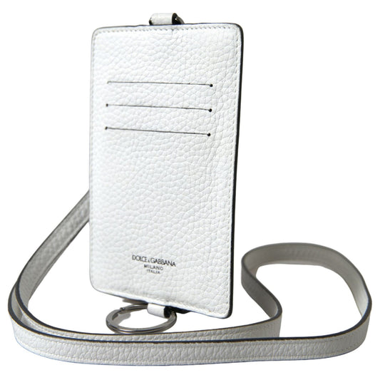 حامل بطاقات دولتشي آند غابانا الأنيق المصنوع من الجلد الأبيض