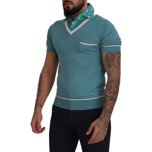 تي شيرت بولو حريري أنيق بطبعة ياقة القارب من دولتشي آند غابانا
