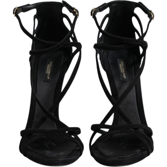 Dolce & Gabbana Black Leather Stiletto Heels Sandals Shoes