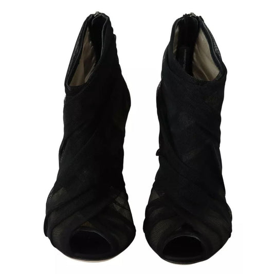Dolce & Gabbana Black Tulle Ankle Boots Stiletto Heels Shoes