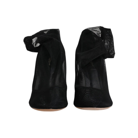 Dolce & Gabbana Black Tulle Stretch Heels Mid Calf Boots Shoes