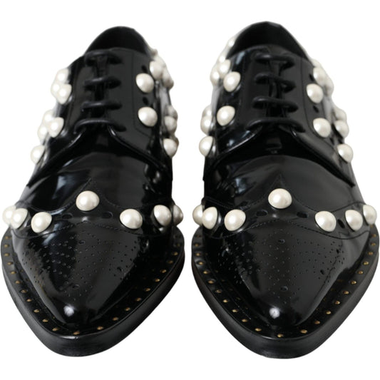 حذاء دولتشي آند غابانا من الجلد الأسود مع لؤلؤ صناعي