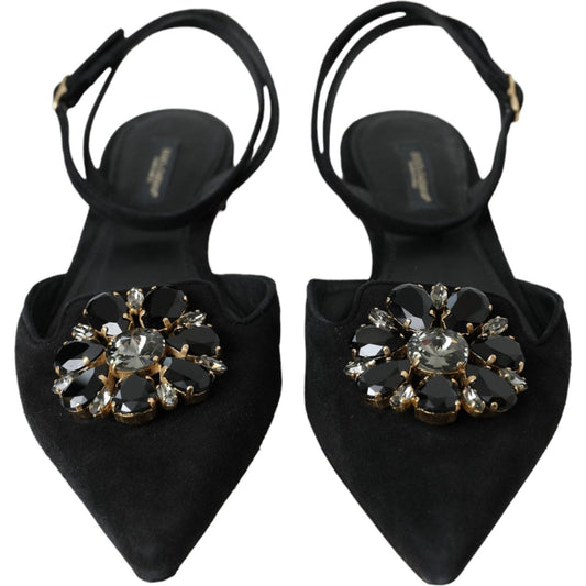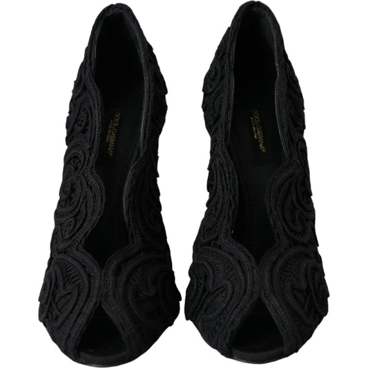 حذاء دولتشي آند غابانا الأنيق المصنوع من الدانتيل الأسود مع تفاصيل زهرة الجواهر