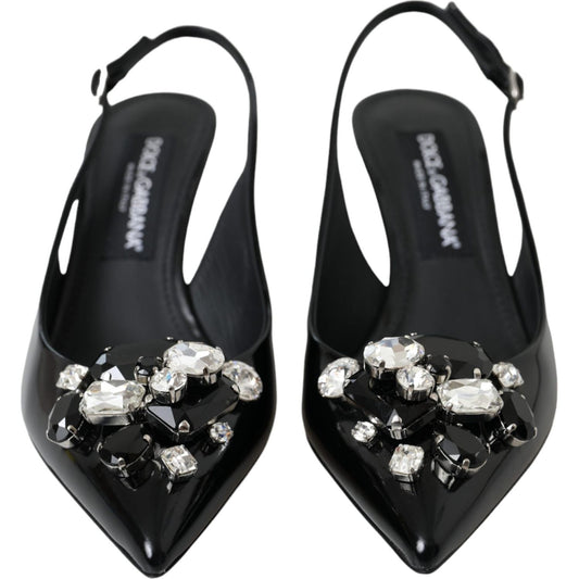 حذاء دولتشي آند غابانا المصنوع من الجلد الأسود اللامع والمزين بالكريستال