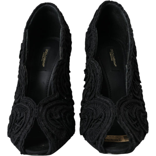 دولتشي آند غابانا حذاء كوردونيتو ريكامو أسود بمقدمة مفتوحة
