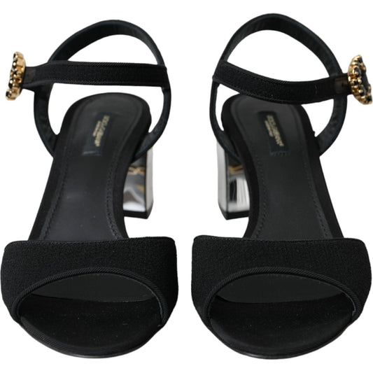 صندل كيرا من الساتان بكعب عالٍ باللون الأسود من دولتشي آند غابانا