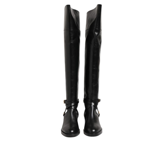 Dolce & Gabbana Black Suede Leather Knee High Boots Shoes