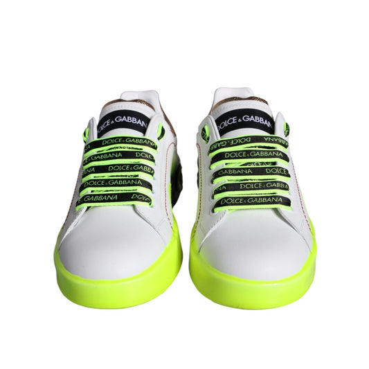 حذاء سنيكرز بورتوفينو منخفض الرقبة من الجلد الأبيض من دولتشي آند غابانا
