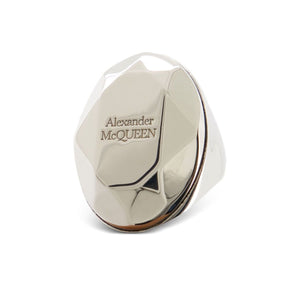 The Faceted Stone ring from Alexander McQueen featuring silver-tone, metal, polished finish, engraved logo and chunky band. Stone ring