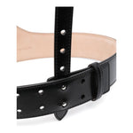 Y-shaped leather braces from Alexander McQueen featuring black, calf leather, logo-embossed strap, punch-hole detailing and adjustable shoulder straps. Leather harness Size and Fit - Maximum Length: 75.0 Centimetres. Minimum Length: 62.0 Centimetres. WIDTH: 4.0 Centimetres.