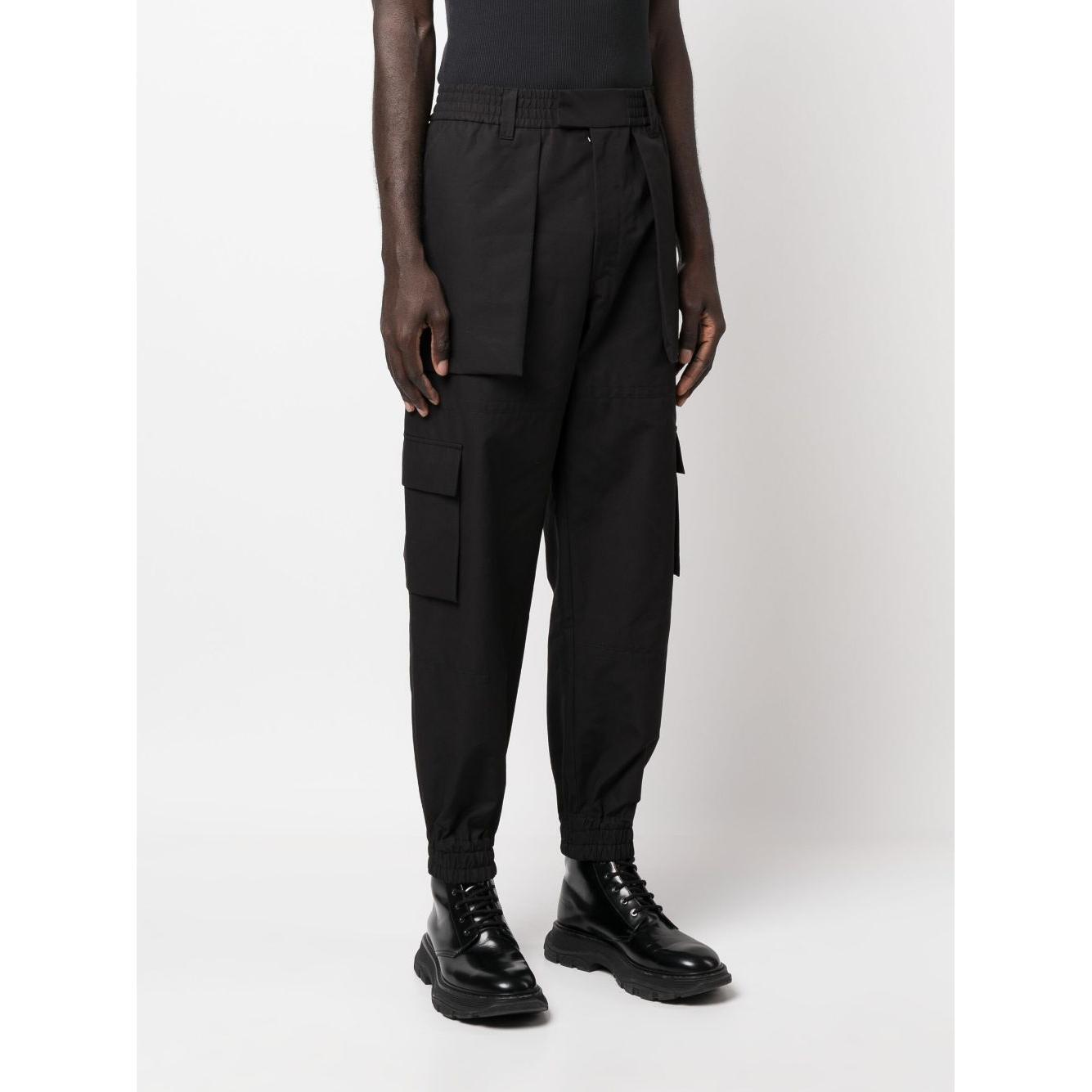 cotton cargo trousers from Alexander McQueen featuring black, cotton, belt loops, multiple cargo pockets and elasticated cuffs. Organic cotton cargo trousers Size and Fit - This piece fits true to size. We recommend you get your regular size. Model is 1,84m / 6ft 1in wearing size 48 (IT)