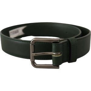حزام دولتشي آند غابانا الأنيق المصنوع من الجلد باللون الأخضر الداكن مع مشبك الشعار