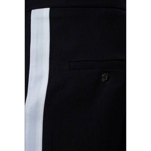 Embark on a journey of sheer style and comfort with Balmain’s black cotton trousers. Adorned with striking white side stripes that command attention, these trousers are the epitome of modern elegance. Designed for the man who appreciates fine details, they feature sleek side welt pockets and a convenient zip and hook fastening. The addition of two back pockets secured with buttons adds a touch of classic refinement. Crafted with a touch of elastane, they promise a perfect blend of flexibility and form-fitting allure, making them a must-have in your wardrobe.
