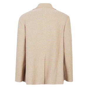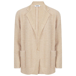 Beige jacket, long sleeves, without buttons, open, two patch pockets on the front, straight hem. Cotton blend blazer jacket Size and Fit - This piece fits true to size. We recommend you get your regular size. Model is 1,75m / 5ft 8in wearing size 40 (IT)
