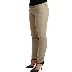 بنطلون جينز ضيق من القطن باللون البيج من Acht