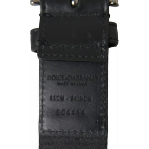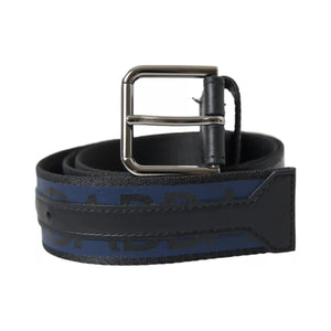 Dolce & Gabbana Black Blue Logo Silver Metal Buckle Belt