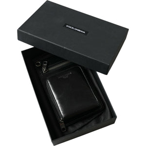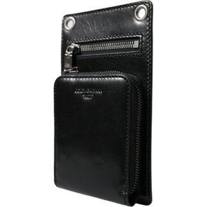 • Dolce & Gabbana Wallet Black Horse Leather Zip Logo Cross Body Phone Slot