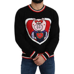 انغمس في مثال الفخامة مع هذه السترة ذات الرقبة الدائرية الأصلية 100% من Dolce & Gabbana. هذه السترة السوداء الأنيقة مزينة بشعار "Pig of the Year" الفريد، مما يجعلها قطعة مميزة في أي خزانة ملابس متطورة. صُنعت السترة بمهارة استثنائية في إيطاليا، وتتميز بمزيج من الكشمير والصوف، مما يضمن الراحة والأناقة.