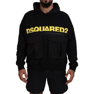 سترة صوفية مطبوعة بغطاء رأس من القطن الأسود من Dsquared²