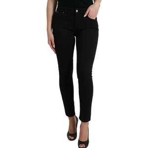 بنطلون جينز مطاطي أنيق أسود اللون بخصر متوسط من دولتشي آند غابانا