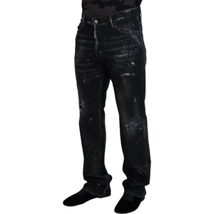 Dsquared² Black Crystal Embellished Tattered Denim Jeans