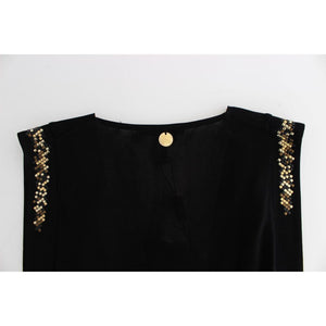 فستان روكوباروكو الأسود القصير الأنيق بدون أكمام مع تفاصيل ذهبية