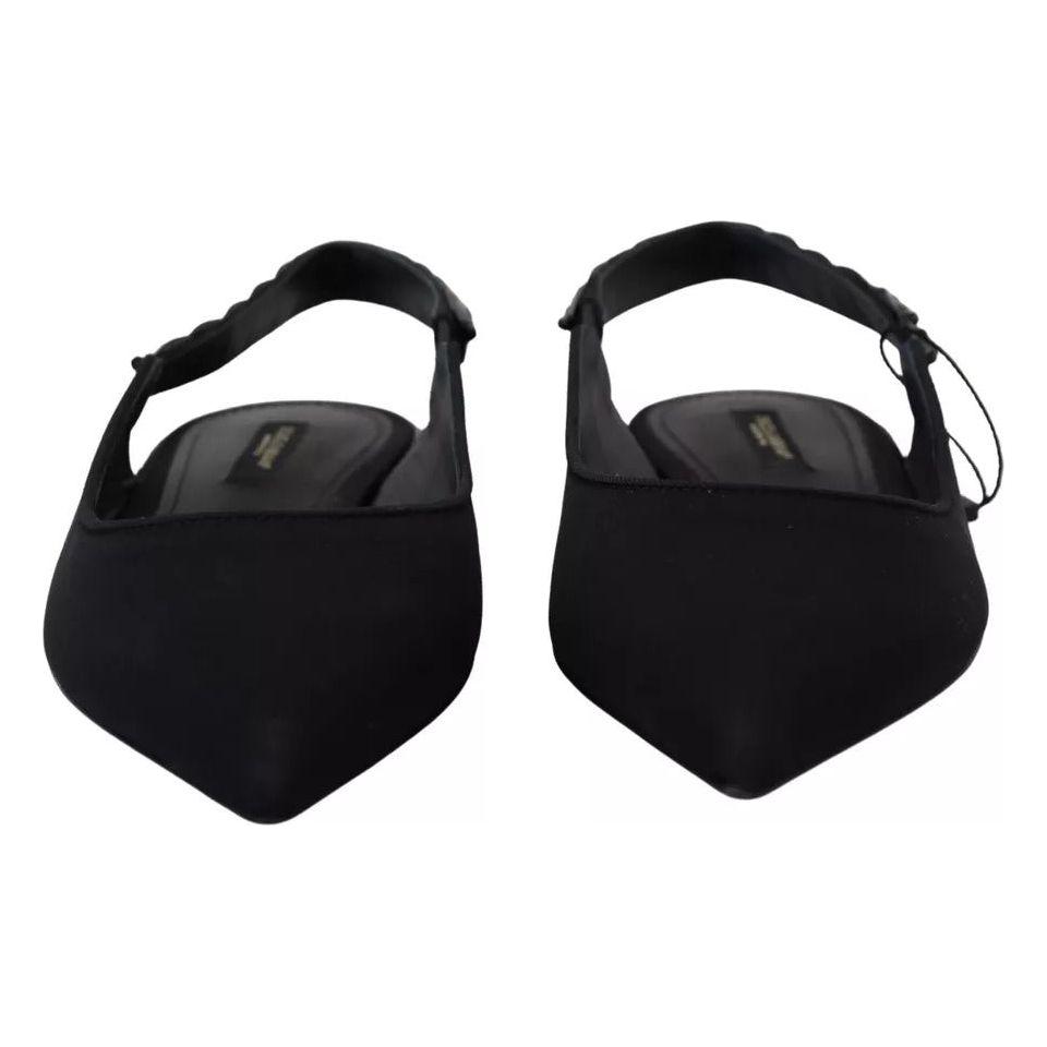 حذاء دولتشي آند غابانا الأسود المسطح ذو الكعب العالي والمزين بالكريستال