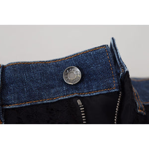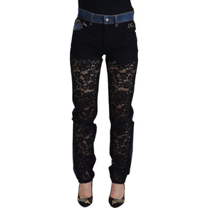 بنطلون جينز أنيق من دولتشي آند غابانا بجزء أمامي من الدانتيل مزين بالزهور