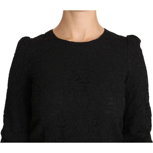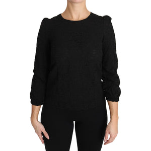 بلوزة دولتشي آند غابانا الأنيقة ذات الياقة المستديرة باللون الأسود والمزينة بالزهور