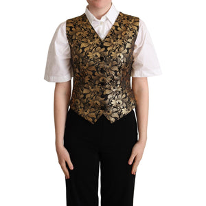 زيّن خزانة ملابسك بمثال الفخامة مع هذه الصدرية المذهلة بدون أكمام من دولتشي آند غابانا. مثالية لإضافة لمسة من الرقي إلى أي مجموعة، تتميز هذه القطعة الرائعة بتصميم جاكار أسود لامع مع لون ذهبي، ممزوج بشكل متناغم مع راحة الحرير ومتانة ألياف البوليستر والقطن. تأتي الصدرية مع زر أمامي أملس للإغلاق، مما يضمن ملاءمة آمنة وجذابة. بفضل صناعتها الإيطالية وتفاصيل الشعار المميز للعلامة التجارية، تعد هذه الصدرية شهادة على الأناقة والأناقة الخالدة.