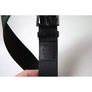 • Dolce & Gabbana Black Green Leather Silver Metal Buckle Belt
