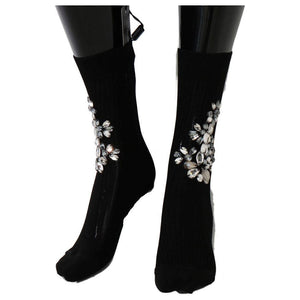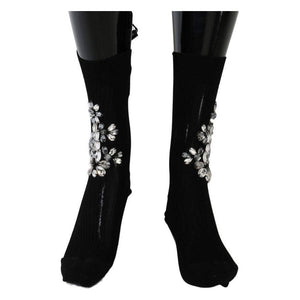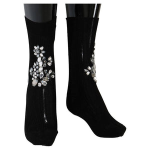 جوارب محبوكة سوداء مزينة بالكريستال من دولتشي آند غابانا