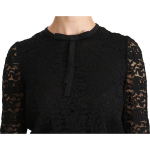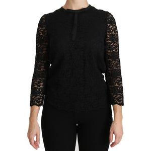 بلوزة دولتشي آند غابانا الأنيقة ذات الرقبة الدائرية من الدانتيل الأسود