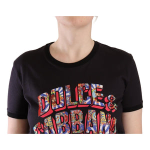 تي شيرت دولتشي آند غابانا شيك أسود بياقة دائرية وشعار