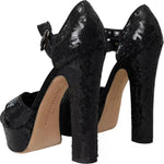 حذاء صندل بكعب عال من دولتشي آند غابانا باللون الأسود مزين بالترتر وحزام للكاحل
