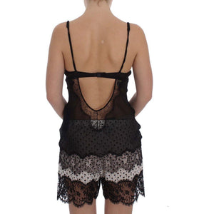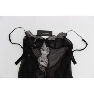 قميص داخلي أنيق من الدانتيل والحرير باللون الأسود من دولتشي آند غابانا