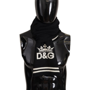 • Dolce & Gabbana Black White Cotton DG Printed Cashmere Shawl Scarf