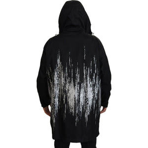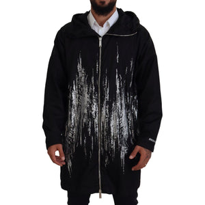معطف طويل بغطاء رأس من النايلون بطبعة باللونين الأسود والأبيض من Dsquared²