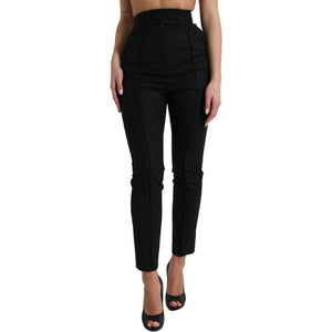 اكتشفي مثال الحرفية الإيطالية مع هذا البنطال الرائع ذو الخصر العالي باللون الأسود من Dolce & Gabbana. مصممة بشكل مثالي لإبراز صورتك الظلية، فهي توفر أناقة وراحة لا مثيل لها لأي خزانة ملابس متطورة. هذا البنطلون مصنوع من أجود أنواع الصوف البكر، وهو قطعة أساسية متعددة الاستخدامات تنتقل بسلاسة من الأناقة المكتبية إلى الأناقة المسائية.