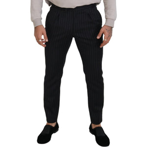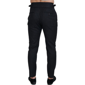 بنطلون دولتشي آند غابانا الأنيق المصنوع من مزيج الصوف باللون الأسود المخطط