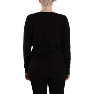بلوفر صوف أنيق أسود اللون بفتحة رقبة على شكل حرف V من دولتشي آند غابانا
