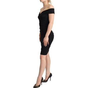 فستان دولتشي آند غابانا الأنيق من الحرير الأسود بدون أكتاف