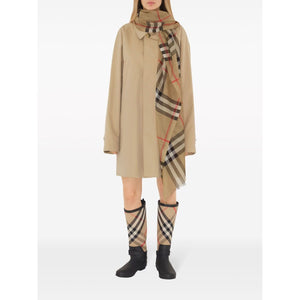 archive beige wool-silk blend plaid check pattern logo patch to the side frayed edge wraparound style Giant Check wool and silk scarf