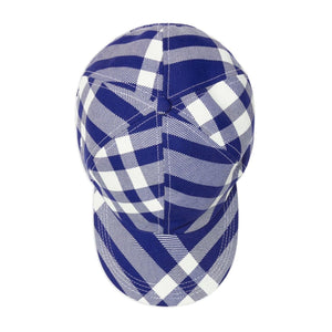 Opeco white, cobalt blue, cotton, tartan paint motif, structure with six panels, curved tense, eyelet detail and adjustable design. Check motif baseball cap