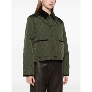 forest green diamond quilting padded design front press-stud and zip fastening corduroy collar long sleeves two front patch pockets mini logo tag Vintage Check-pattern lining straight hem Nylon quilted jacket Size and Fit - This piece fits true to size. We recommend you get your regular size. Model is 1,75m / 5ft 8in wearing size S