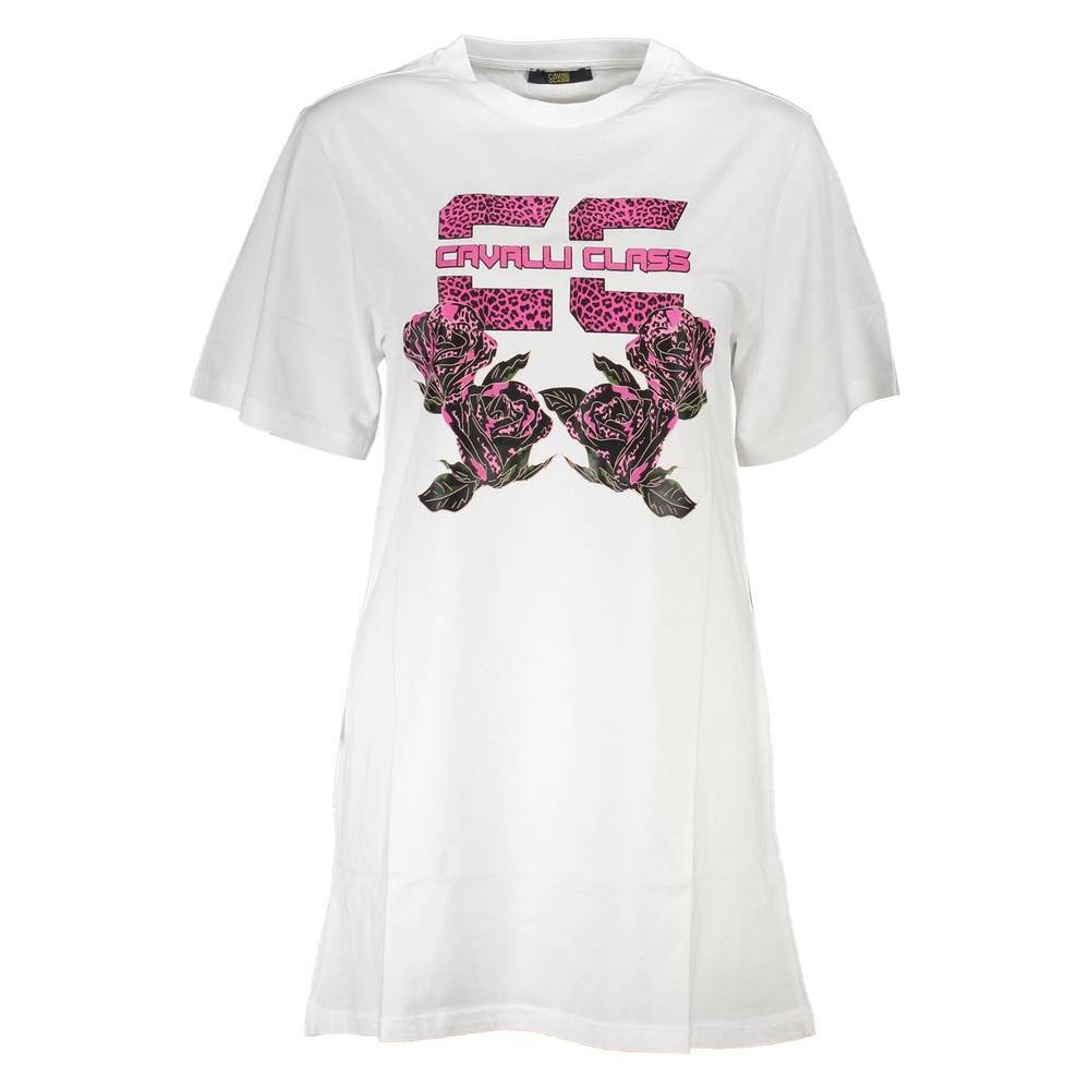 Infuse your wardrobe with a touch of Italian sophistication incorporating this Cavalli Class masterpiece. A stunning short dress that encapsulates modern elegance with an artistic flair, featuring the brand’s iconic print and a tastefully embroidered logo for that touch of luxury. Exquisitely tailored with short sleeves and a chic round neck, this dress captures the essence of contemporary fashion while staying true to timeless style. Perfect for those who dare to make a statement.