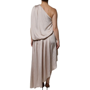 Christian Pellizzari Beige One Shoulder Asymmetric Drape Dress